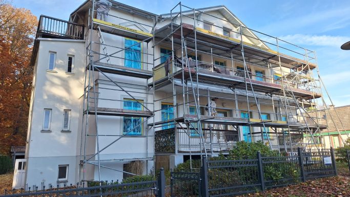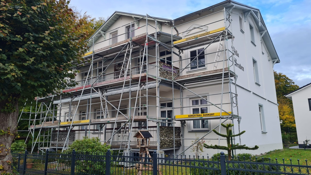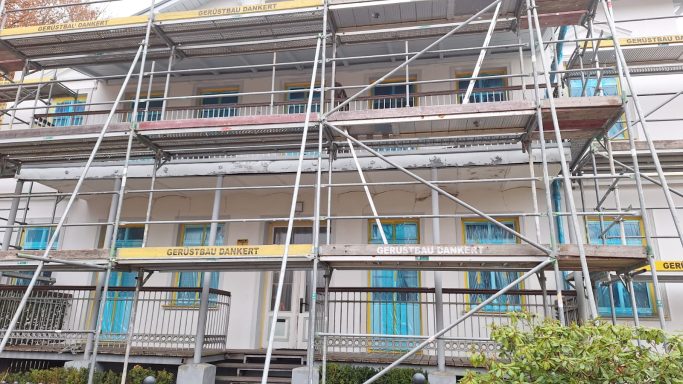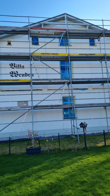 Im November 2025 begann die Sanierung der Hausvorderseite. Leider spielte das Wetter nicht ganz mit und ein Teil der Arbeiten wurde nicht geschafft. Der Neuanstrich der Haustür und die Überarbeitung der Veranda (Balkone und Gestell) wird im frühen Frühjahr nachgeholt, so dass mit Saisonstart auch diese Arbeiten abgeschlossen sind.